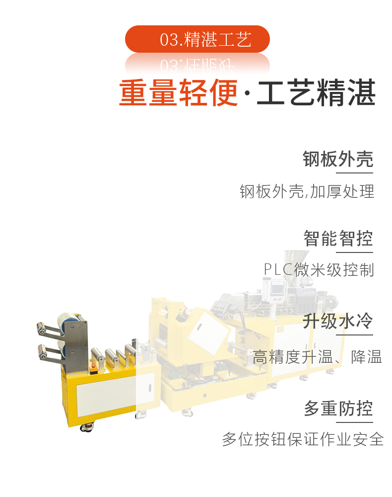 采用擠出機將熱塑性塑料熔融后,通過T型模具形成均勻熔體流延至冷卻輥表面,經冷卻定型后收卷成型